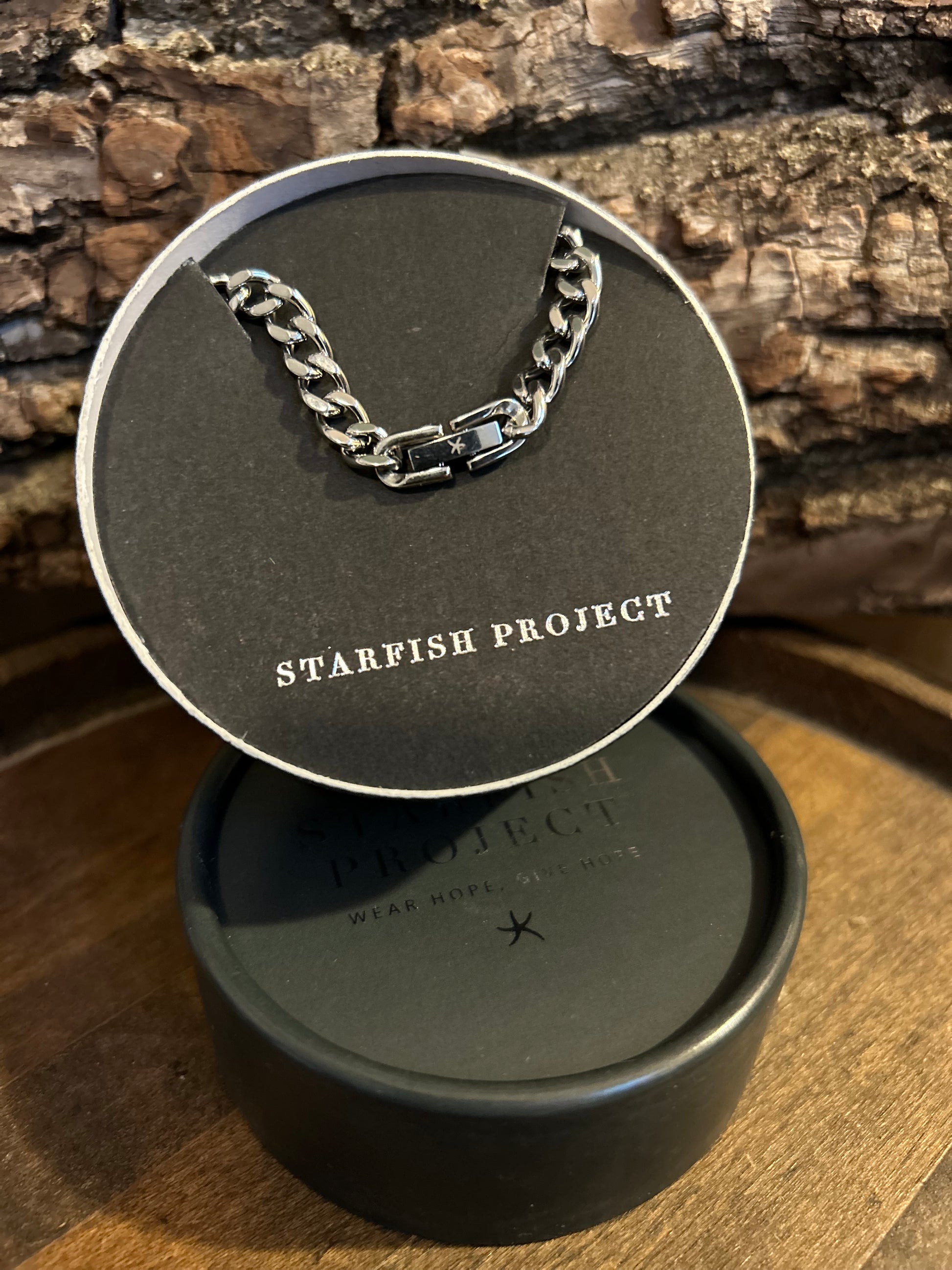 The sleek stainless-steel links represent the strength of people like you and me, joining together to fight for a better future for every woman. The 6mm Linked chain features the signature starfish icon hinge closure!
