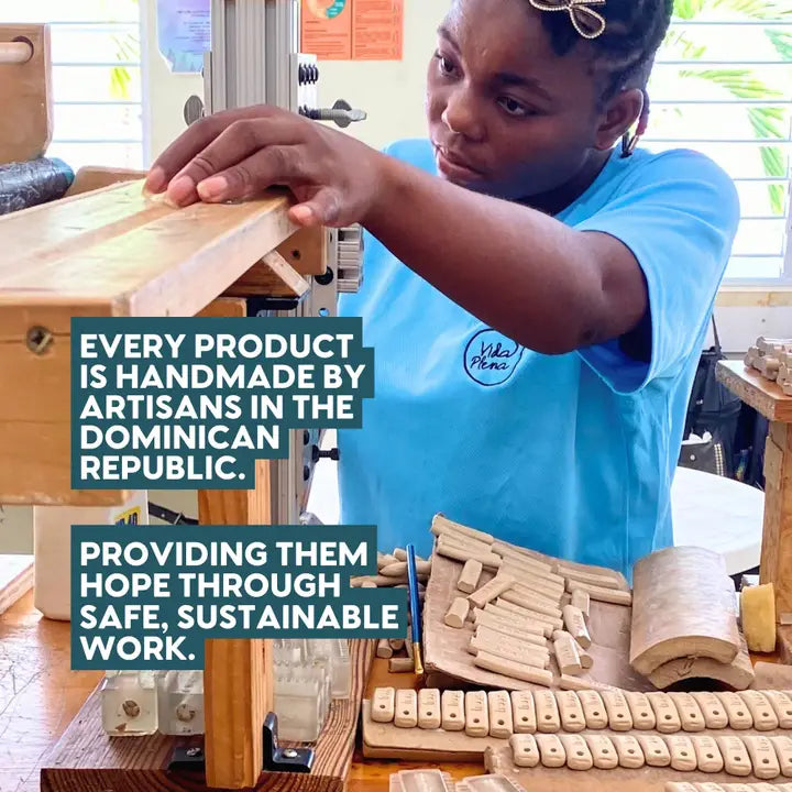 - Handcrafted by female artisans in the Dominican Republic