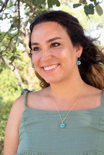 Discover the perfect everyday necklace with this beautifully crafted recycled glass pendant. Each piece is lovingly handmade and paired with a warm gold-filled chain in a flattering longer length that works wonderfully on its own or layered with other favorites. This is jewelry that feels good to wear—combining thoughtful design with sustainable materials so you can feel confident in your choice.