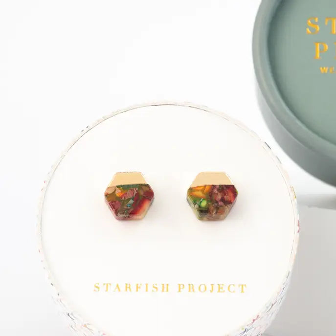The vibrant hues in the Sedona Sunrise Studs celebrate the hope and possibilities of every new day. Each vibrant emperor stone dipped in 14K plated gold shines like the sun in an array of earth tones and a pop of eye-catching red. The colorful stone paired with the modern geometric shape, will make the Sedona Sunrise Studs a new favorite for your everyday wear!